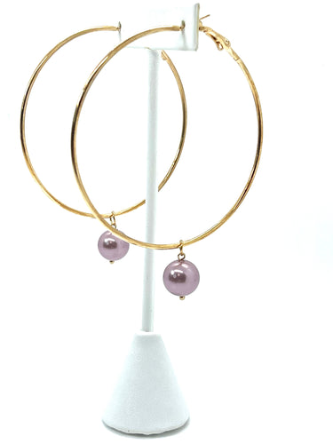 Hoop Earrings with Lavender Pearl