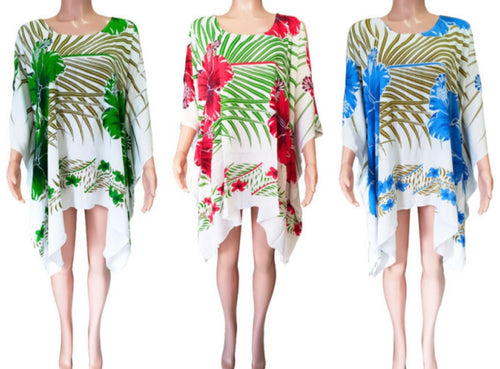Tropical Hibiscus with Open Shoulder Poncho (One Size)